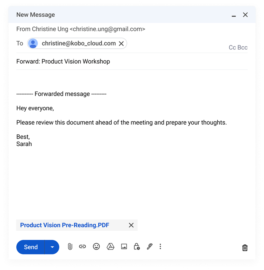 Problem: Highly requested feature (40% feature request) to forward work/school documents.