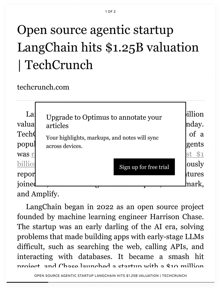 Pictured above: Viewing articles on eReader with upsell entry-point, gating the annotation experience.