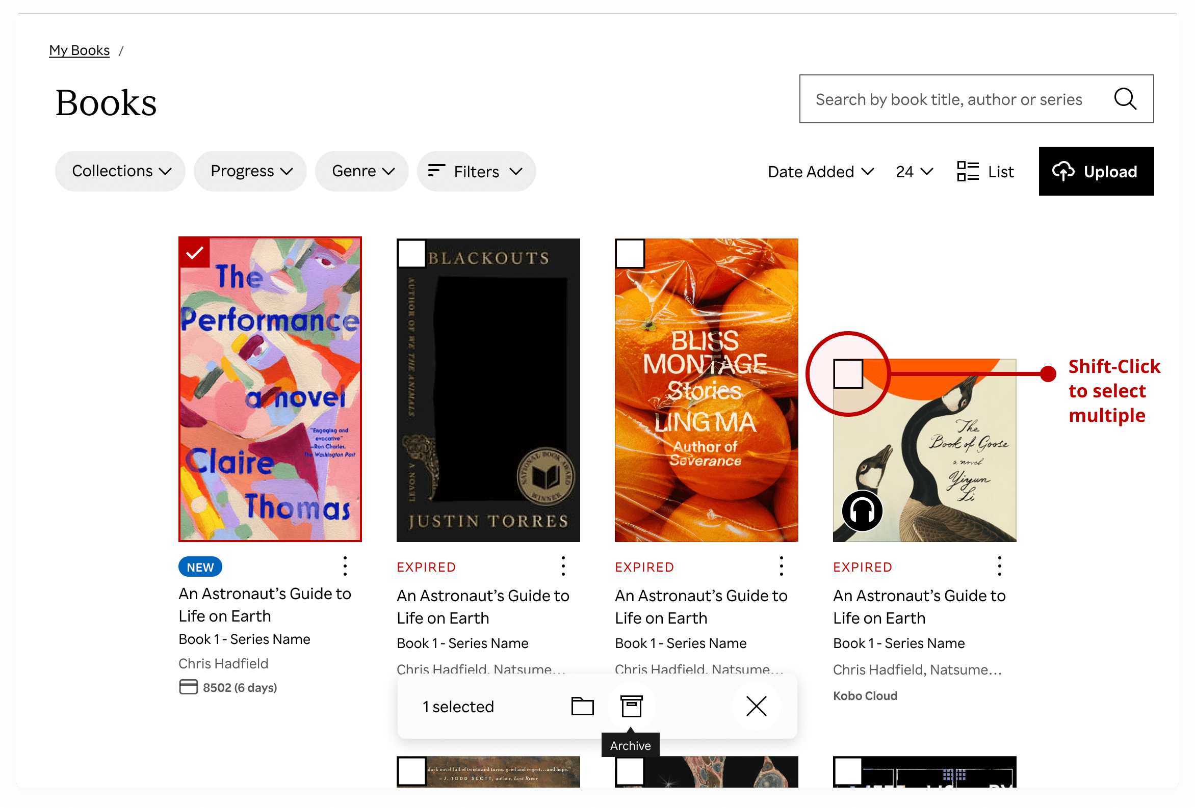 Problem: Users couldn't bulk manage expired library books, lapsed subscription books, or personal documents.