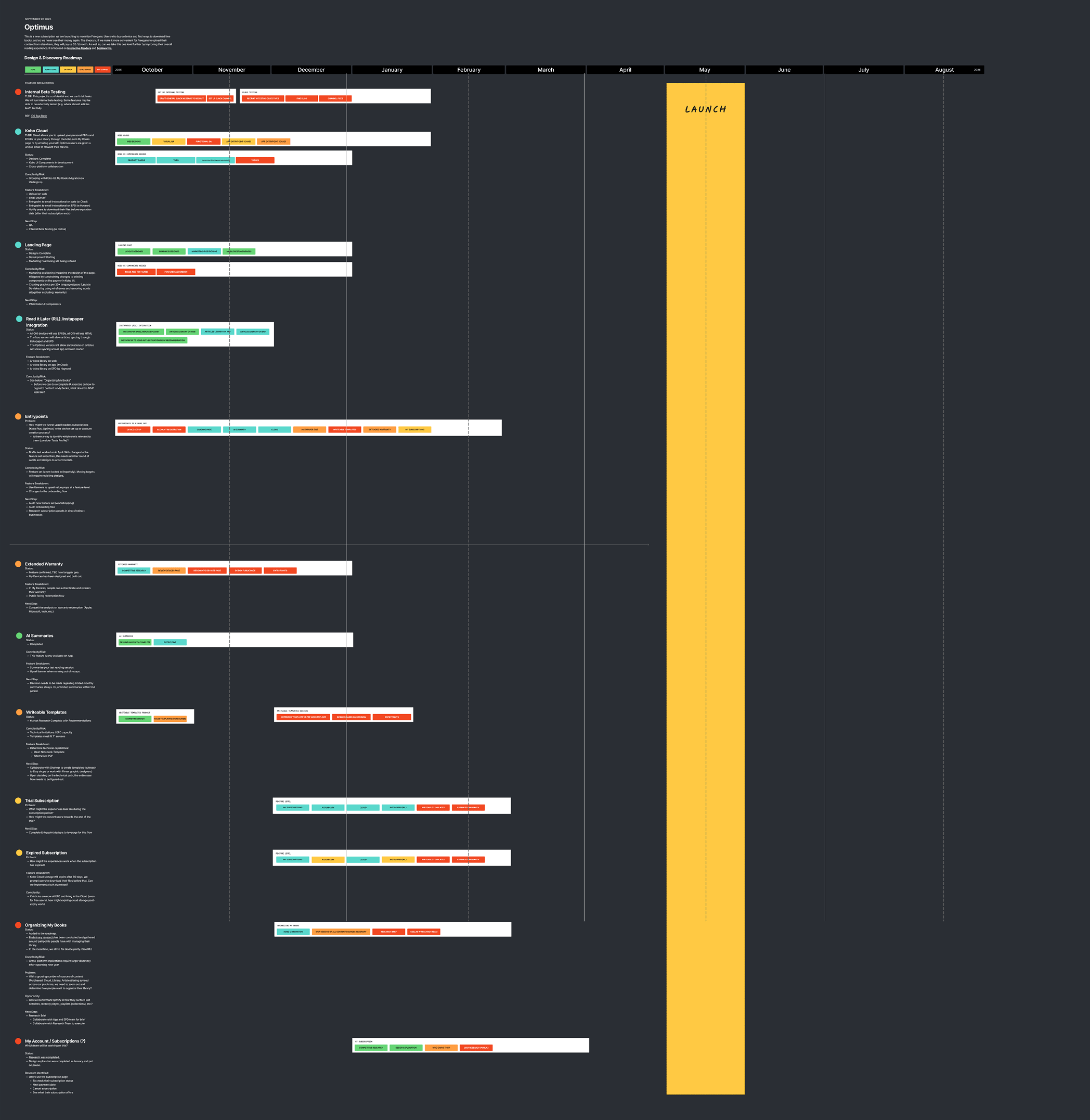 Breaking down each feature critical to launch. Roadmap details the current status, complexity and risk, and next steps for each feature.
